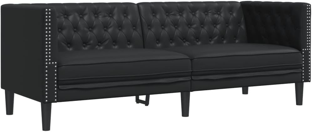 Sofá Chesterfield de 3 Plazas en Cuero Sintético Negro de vidaXL